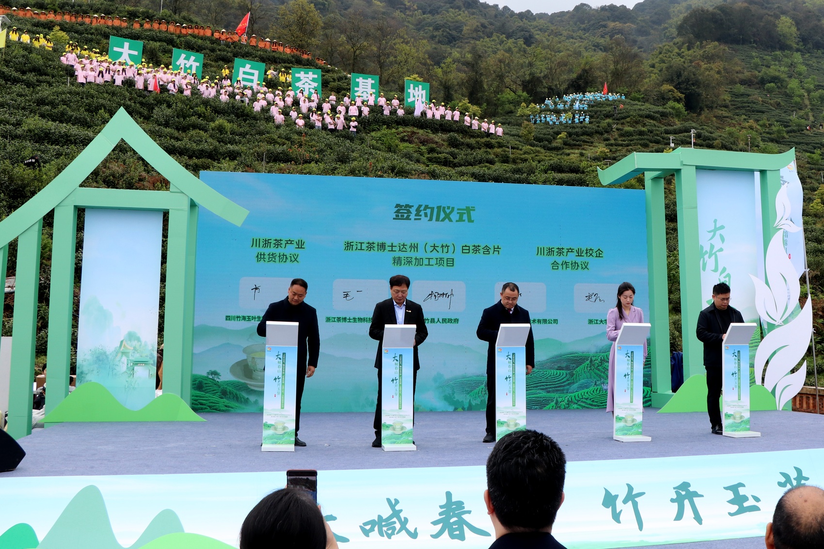 值得关注的是,活动现场还举行集中签约仪式,川浙茶产业供货协议、浙江茶博士达州(大竹)白茶含片精深加工项目、川浙茶产业校企合作协议,打通产销对接、精深加工、人才培育全链条,为大竹白茶产业发展助力。