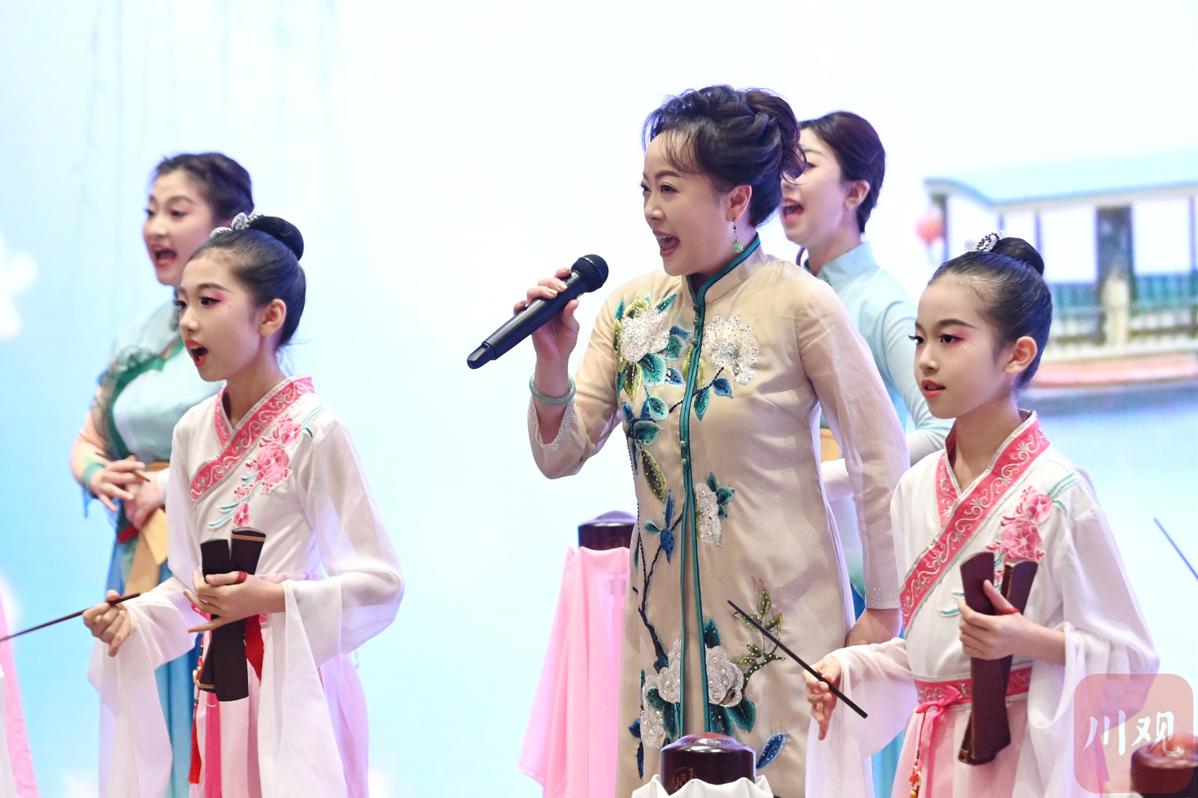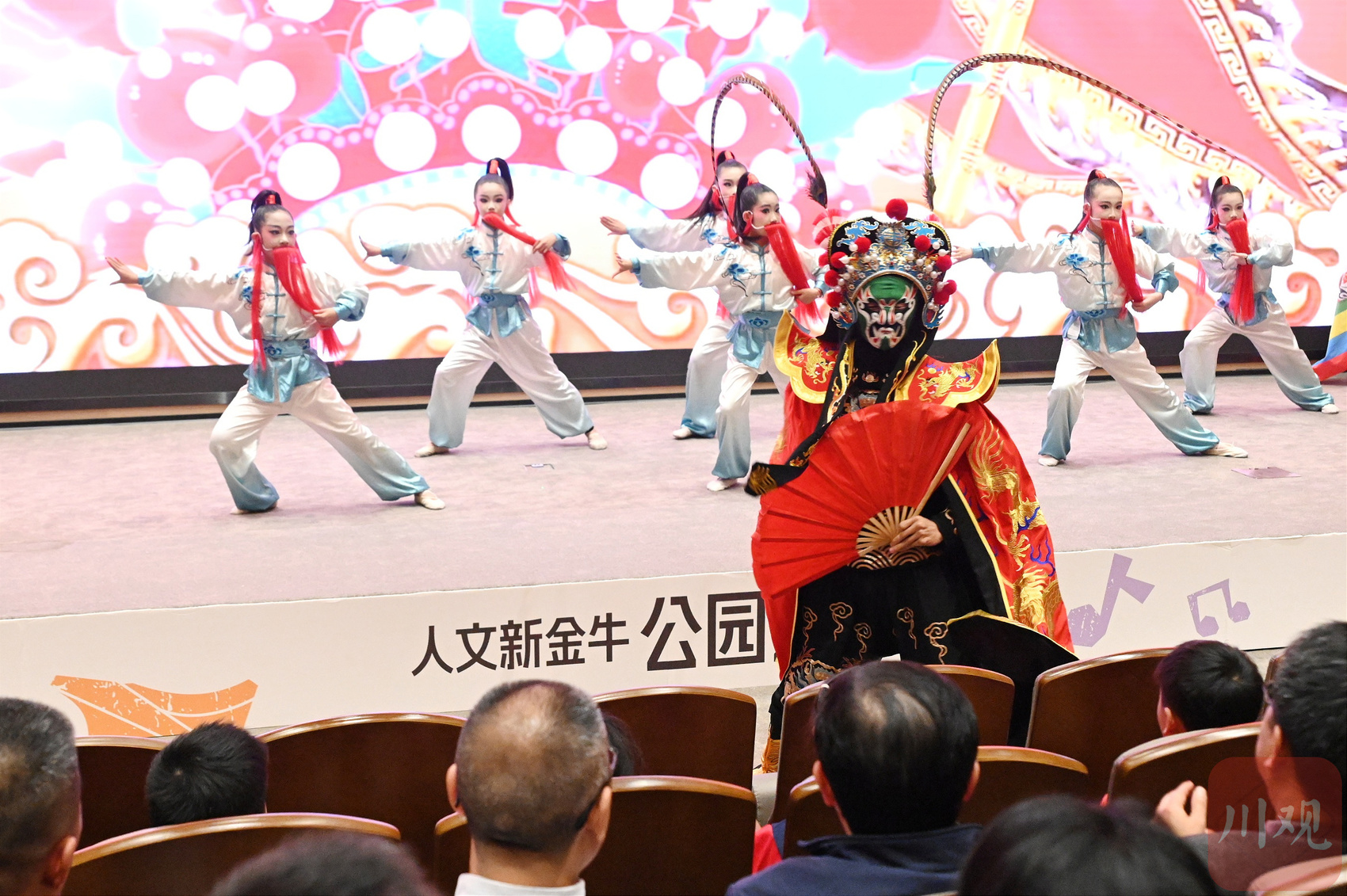 活动现场,除了四川清音,还有川剧、金钱板等传统文化项目的演绎。川剧省级非遗代表性传承人蔡少波、金钱板传人谢赤非也携成都市兴盛小学校、成都市马鞍小学校、成都市泉水路小学校等学校的师生们,在舞台上演绎出一幅传统艺术薪火相传的动人画卷。