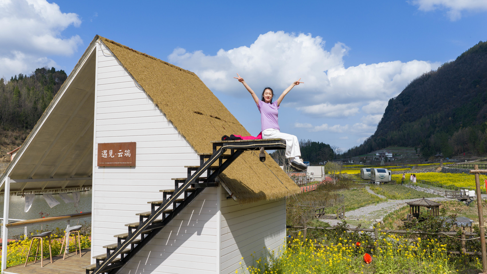 在羊木镇东山村,千亩油菜花海正值盛花期,游人如织。花丛中,一顶顶白色帐篷格外引人注目,游客在帐篷里涮火锅、吃烤肉,将春天“烫”进火锅里。