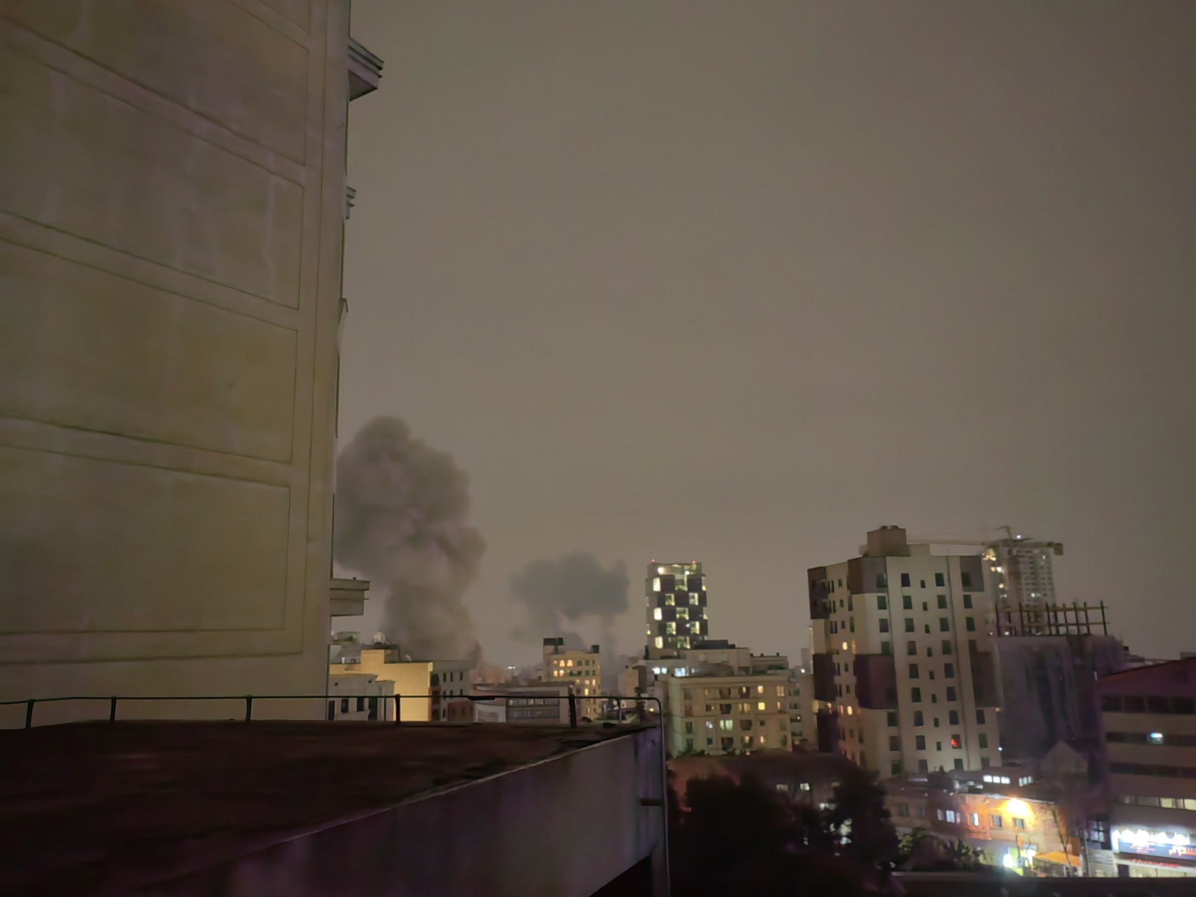 3月13日晚在伊朗首都德黑兰拍摄的空袭后的浓烟。图据新华社