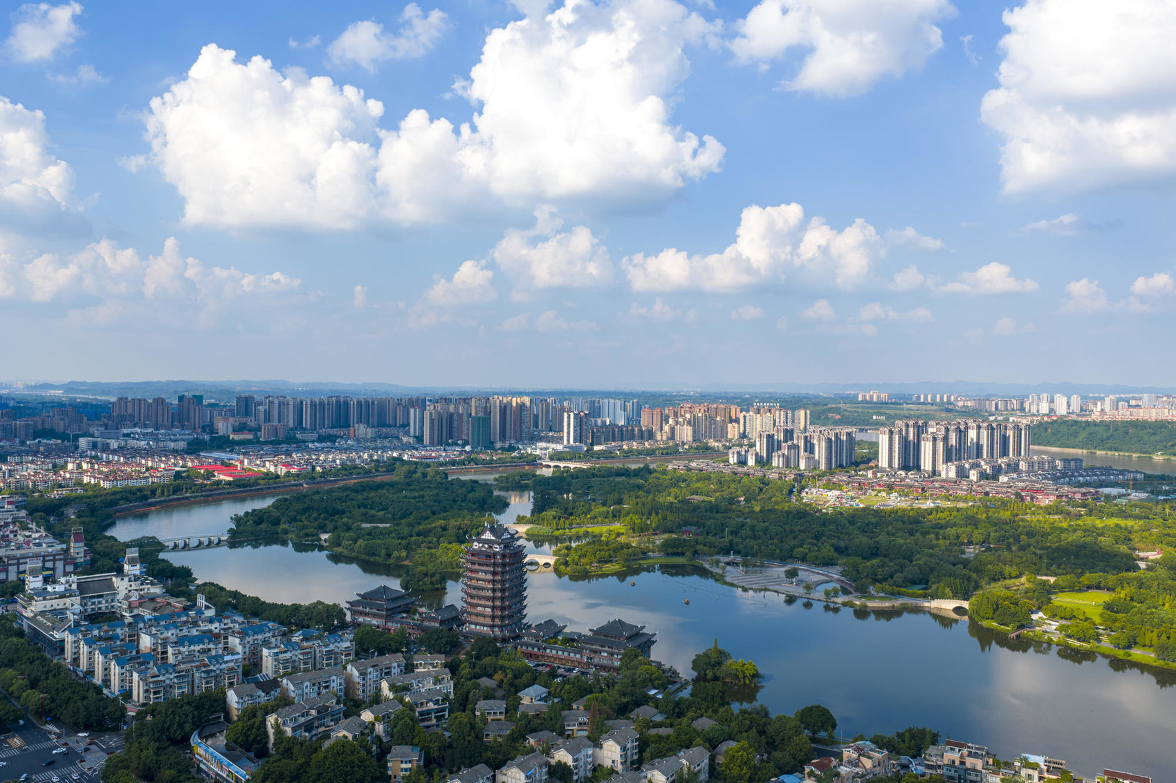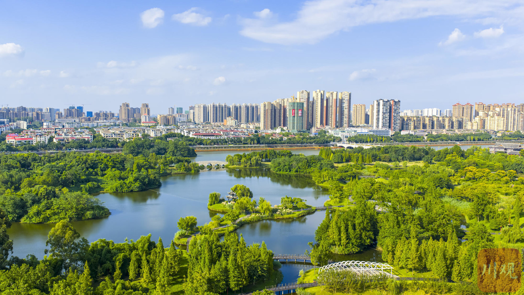 眉山市东坡区在蓝天白云掩映下展现出现代化城市风貌。视觉签约摄影师 李继军眉山市彭山区五湖四海湿地公园。视觉签约摄影师 姚永亮