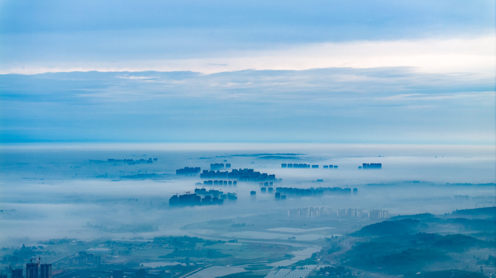 在眉山市彭山区彭祖山远眺城区楼宇。视觉签约摄影师 翁光建