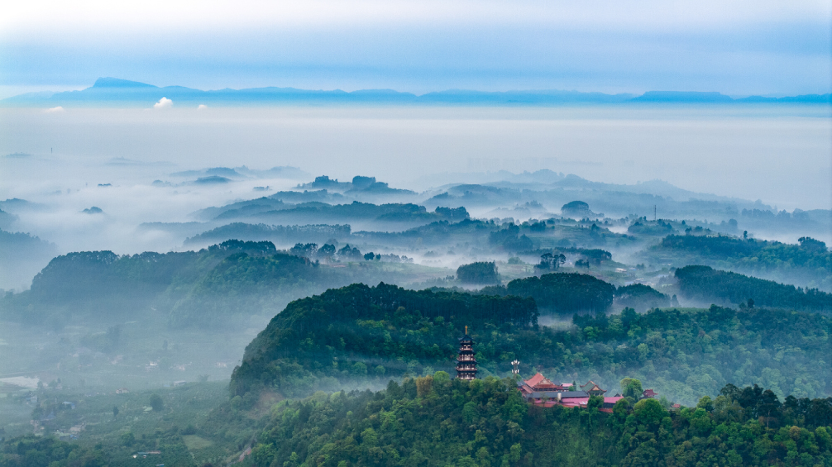 雨后的眉山市彭山区境内的彭祖山,云雾缭绕,树木葱郁,生态环境优美。视觉签约摄影师 翁光建