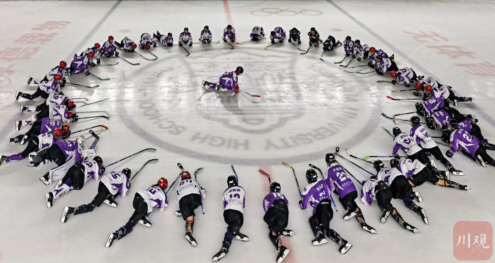 眉山市清华附中天府学校冰球馆内,学生们在进行冰球训练。视觉签约摄影师 刘学懿