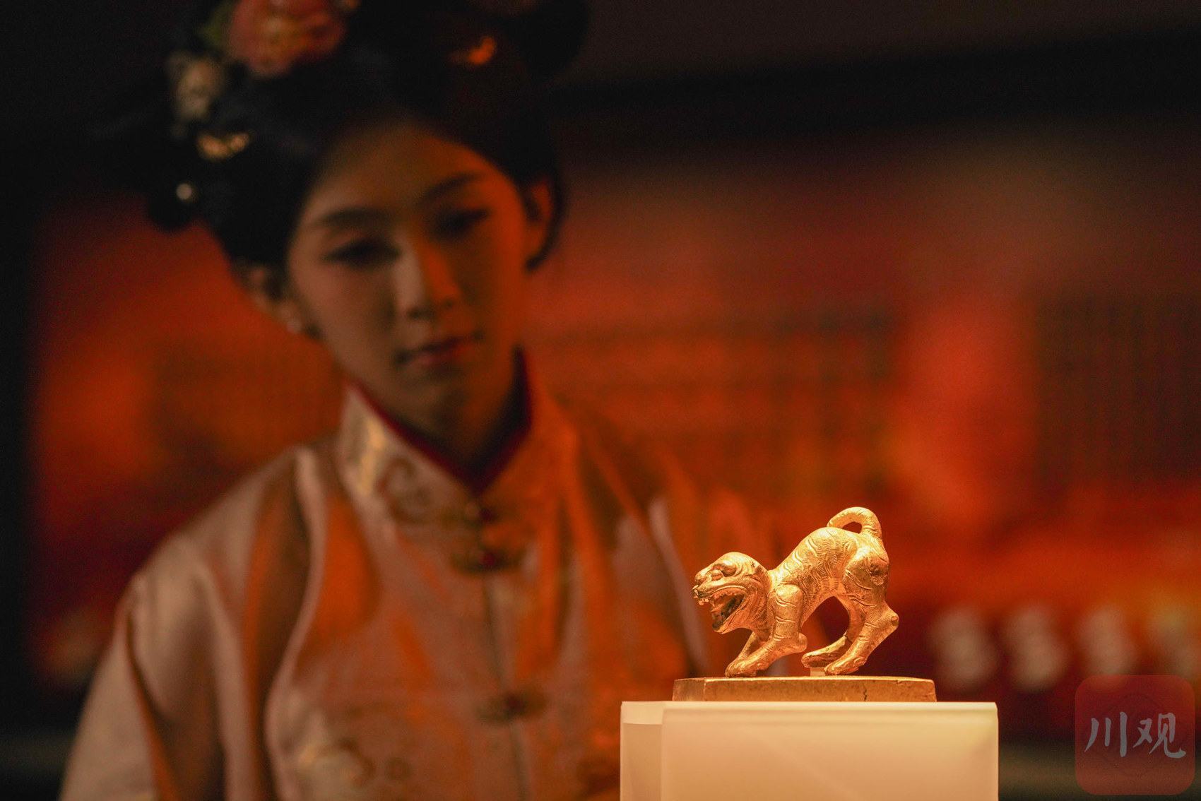 参观者在眉山江口沉银博物馆内参观 “永昌大元帅印” 金印。视觉签约摄影师 翁光建