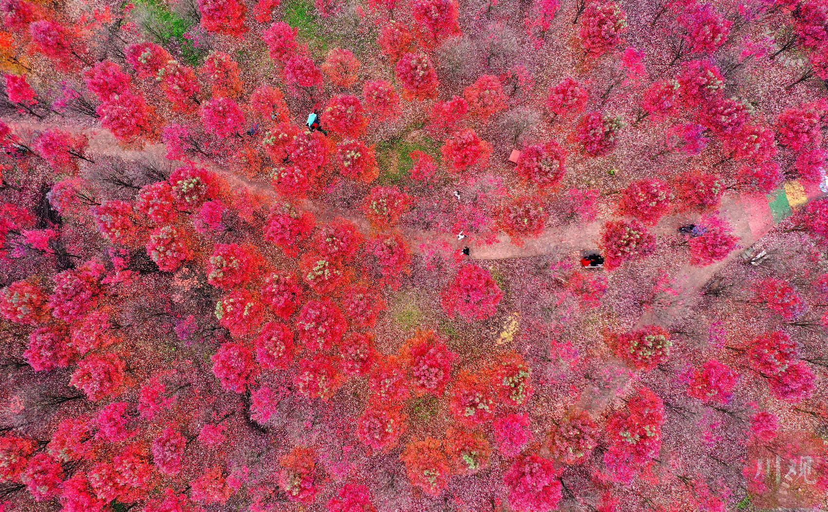 眉山市东坡区太和镇,游客在元宝村红枫基地游玩。视觉签约摄影师 姚永亮