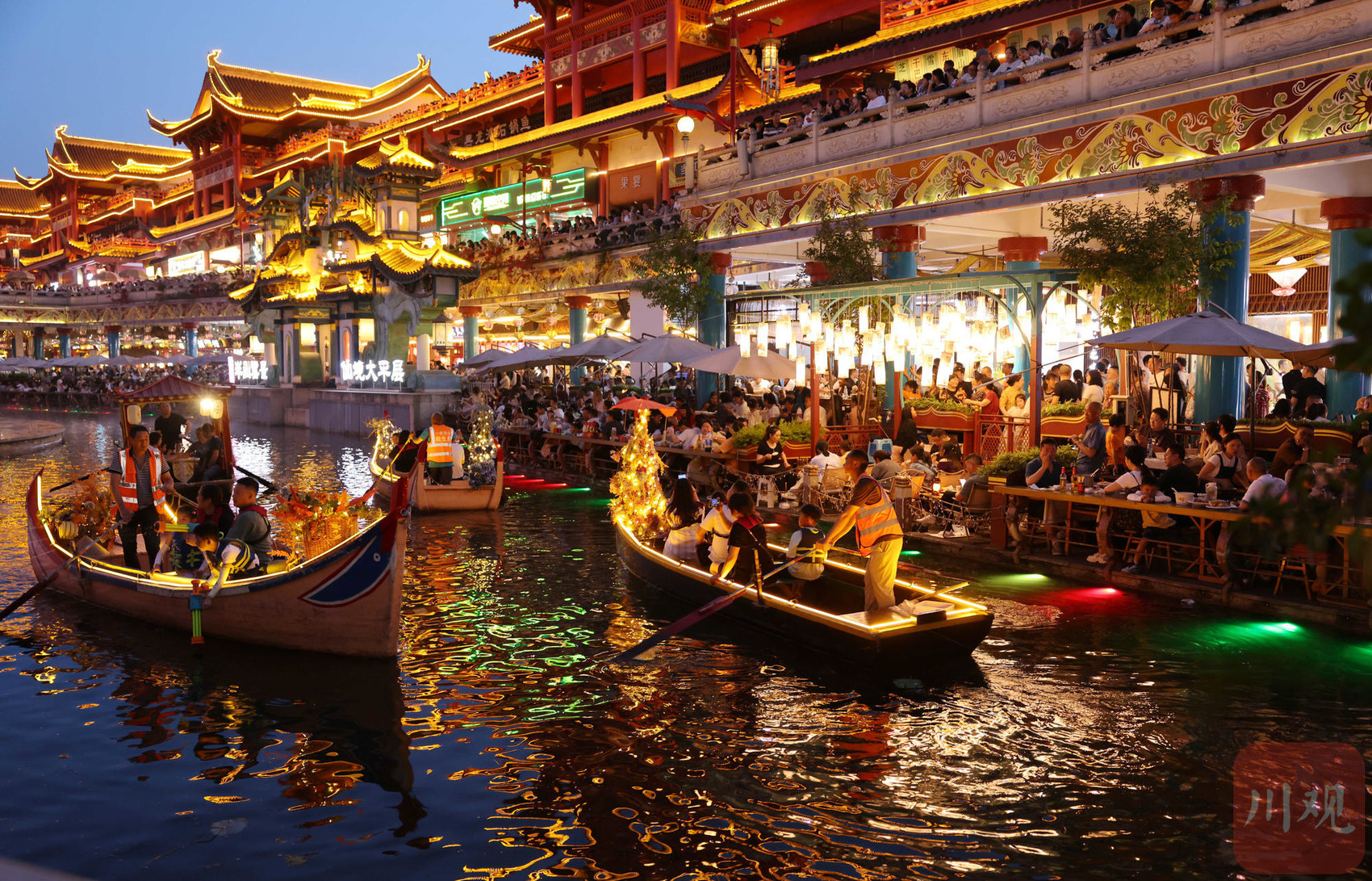 眉山市东坡区穿越盛世古街灯火璀璨,游人众多。视觉签约摄影师 姚永亮