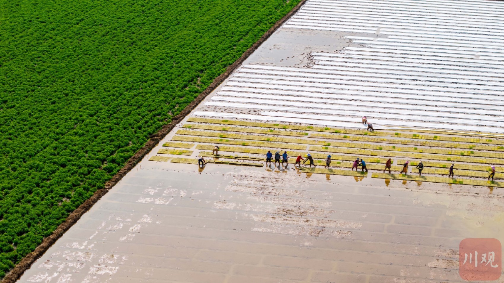 眉山市东坡区永丰村,村民正抢抓当前气温有利时机,紧锣密鼓开展水稻育秧。视觉签约摄影师 顾志平