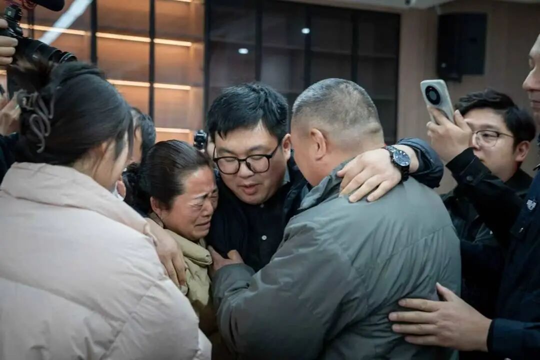 团圆后,一家人笑了