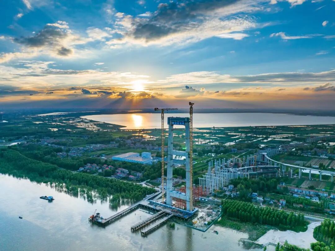 建设中的双柳长江大桥,与周边生态和谐共生(通讯员杨鑫摄)