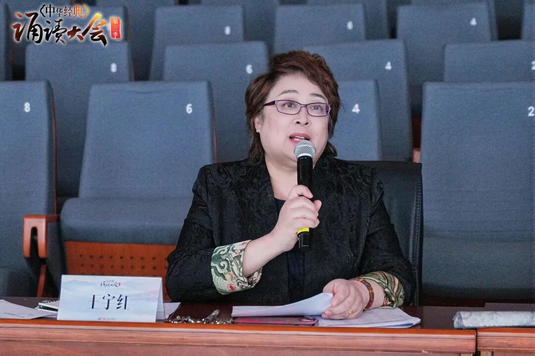 中国传媒大学教授王宇红以“经”与“纬”为喻,将经典比作织布的经纬线,它们相互交织,共同构筑起民族文化认知的整体框架。在她看来,对孩子们而言,来到“中华经典诵读大会”,不仅是参与一场评选,更是接受美育浸润、思政育人,与历史对话、与时代共振的过程。她表示,理解经典须有高度,表达经典须以真感受为起点,强调“感于心而发于物”。