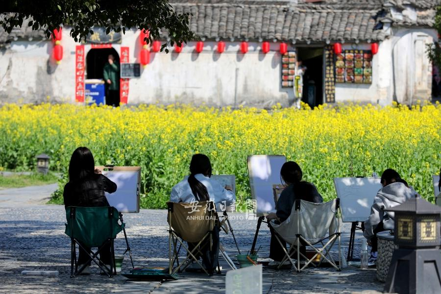 黄山大灵山旅游度假区,油菜花海环绕古村,春风吹过,满目金黄。歙县卖花渔村,桃花流水,油菜花点缀其间,仿佛走进一幅流动的徽州画卷。