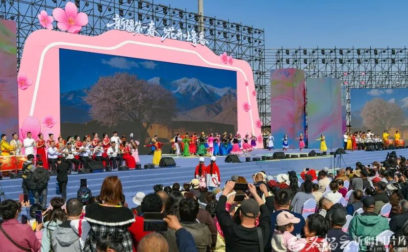 3月20日,马上有“杏”福——“新疆第一春·花开吐鲁番”2026吐鲁番杏花季文旅活动暨托克逊第九届杏花季活动,在托克逊县夏镇南湖村开幕,图为开幕式上的文艺表演。