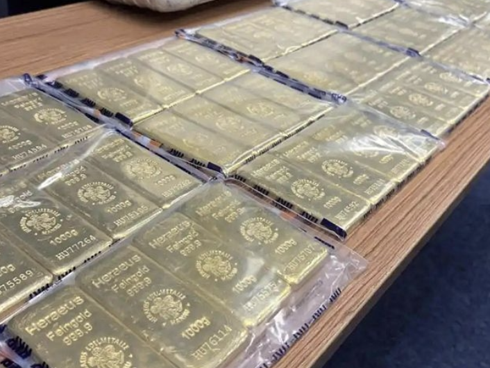图为搜出的金条。