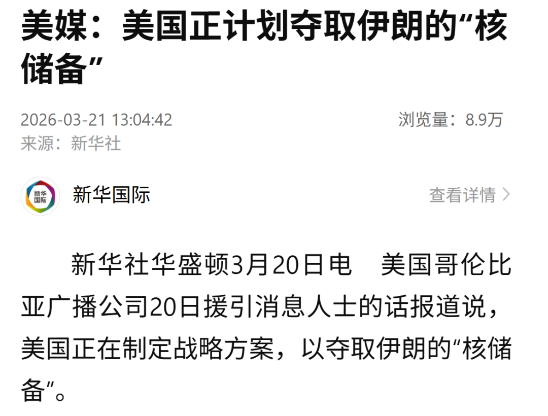 美国哥伦比亚广播公司20日援引消息人士的话报道说,美国正在制定战略方案,以夺取伊朗的“核储备”。