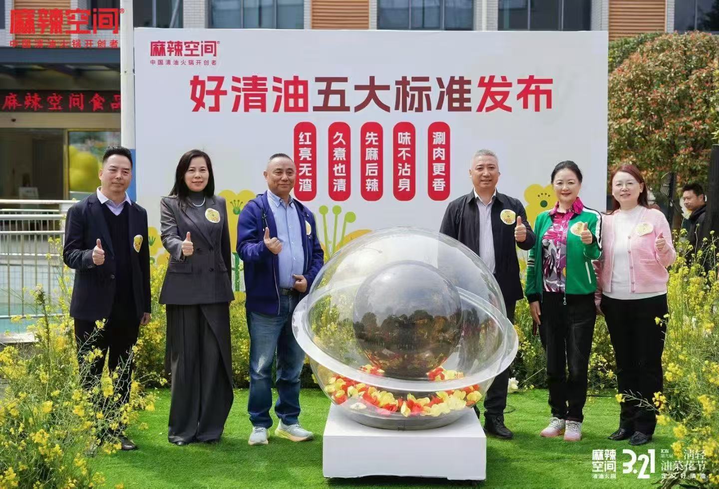 3月21日,麻辣空间第九届“321清轻油菜花节”暨清油火锅品质标准发布会在成都郫都区举行。作为中国清油火锅开创者,品牌直面行业品质模糊、产品混杂痛点,重磅发布「好清油五大金标准」,为清油火锅品类建立首套权威评判体系,推动行业从野蛮生长走向标准化、透明化。