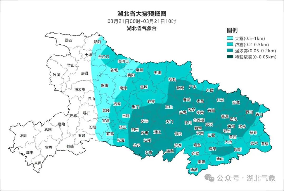 气象部门提醒:21日上午,省内襄阳、随州等地部分地区大雾天气仍将持续,请公众密切关注当地预警预报信息,提前规划出行路线,切实防范大雾天气对交通出行带来的不利影响,确保出行安全。