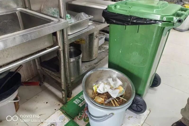存在问题:后厨卫生脏乱差,春节后复工复业时,当事人未对调料盒开展清洗、消毒作业,违规继续盛装调味品。