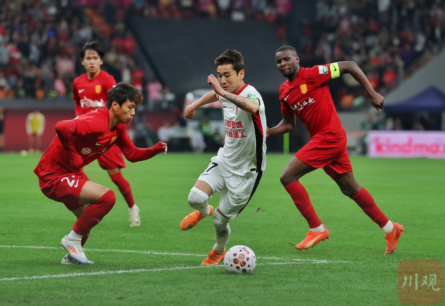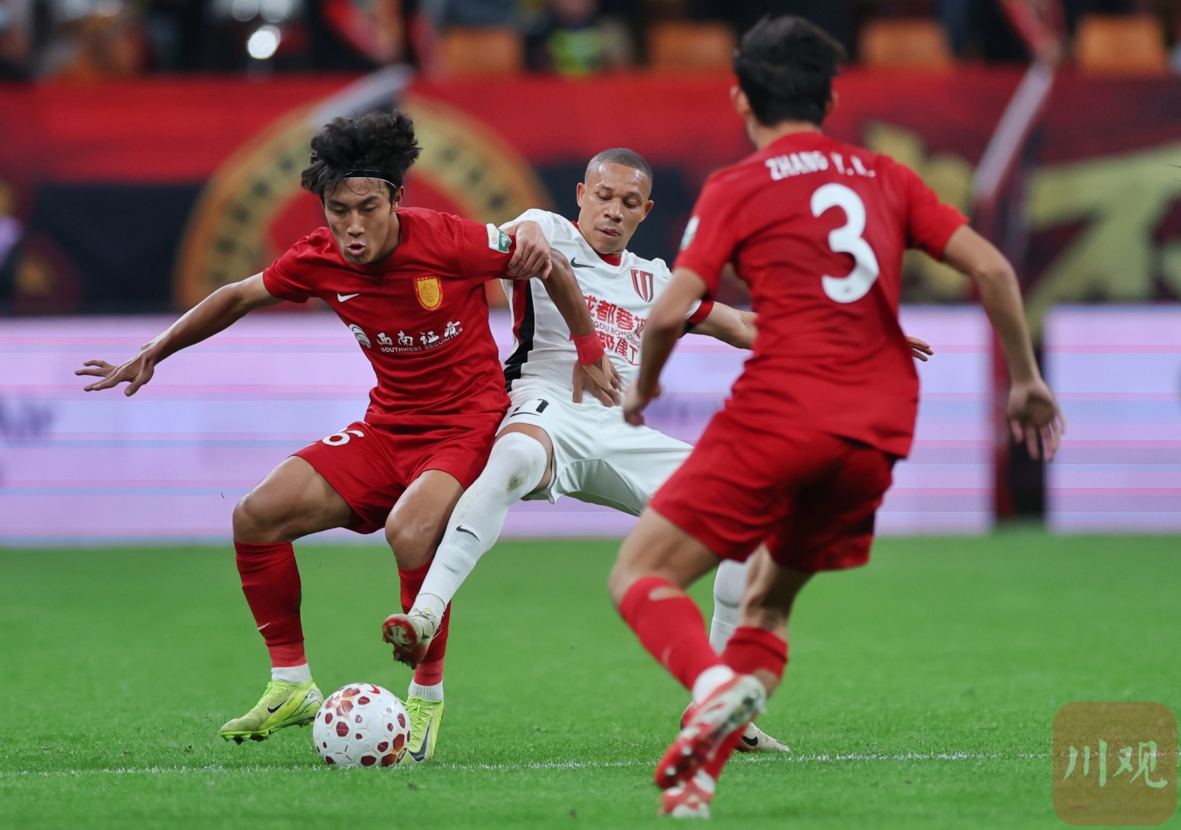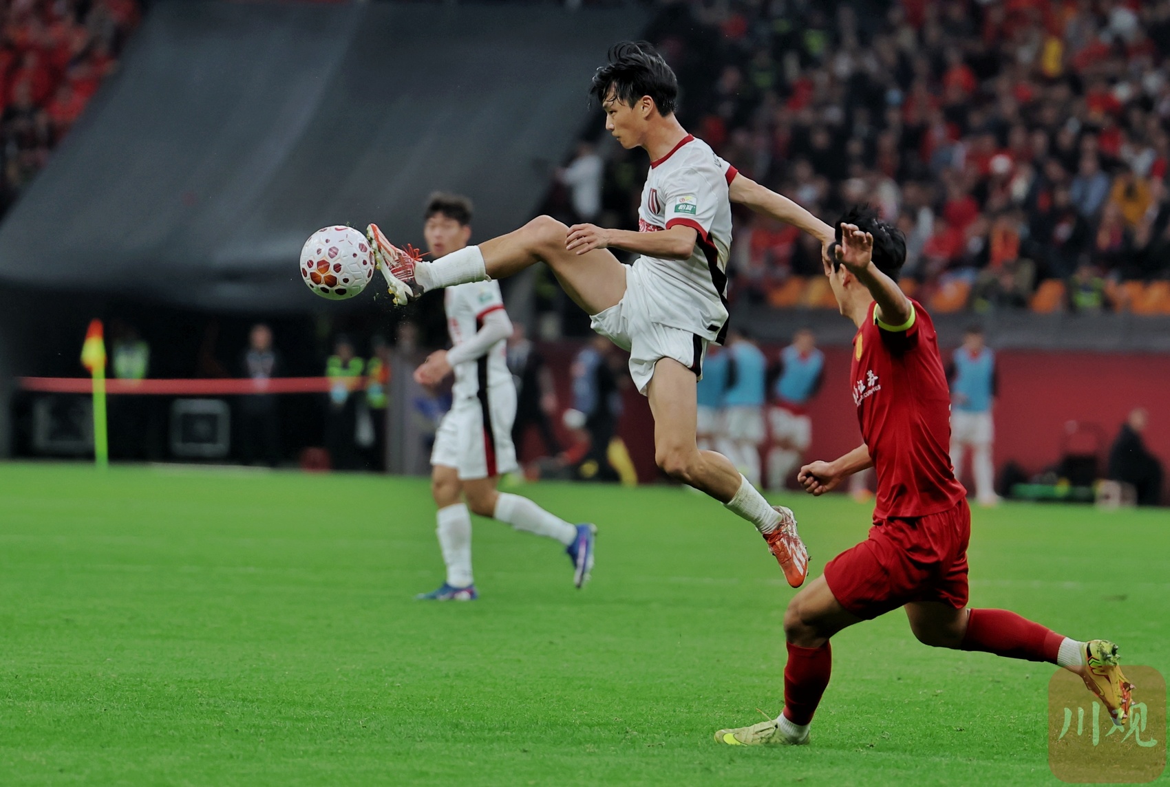 双方中场争夺激烈(白衣为成都蓉城队员)。