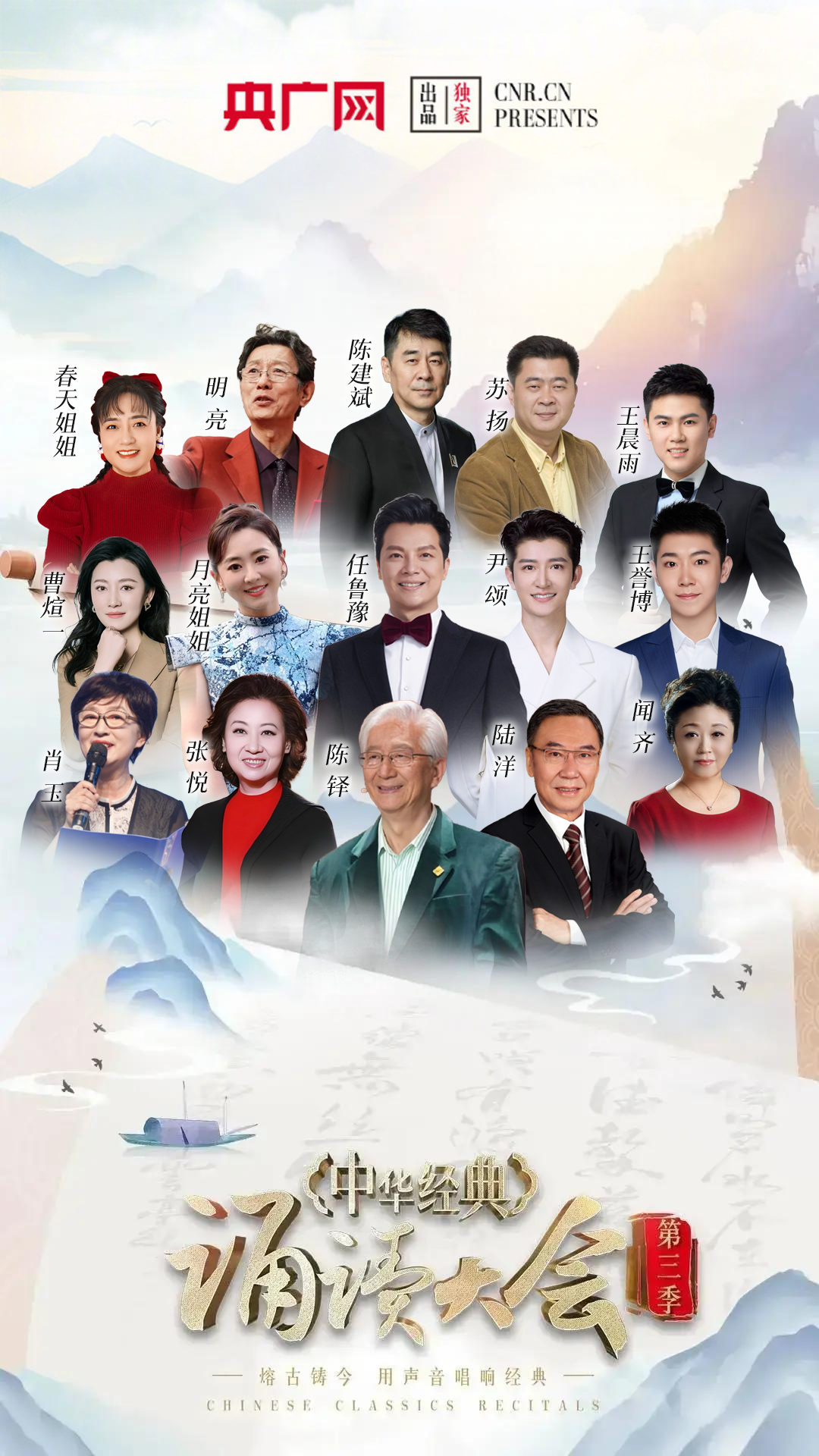 群贤毕至,以诵会友。备受瞩目的“中华经典诵读大会”(第三季)全国总展演暨颁奖盛典,将于3月22日在福建漳州龙海精彩启幕。嘉宾阵容群星璀璨、实力云集,汇聚主持界、演艺界、诵读界一众大咖,为这场经典之约注入强劲力量。中央广播电视总台名嘴任鲁豫、月亮姐姐、尹颂联袂担纲盛典主持;中国内地男演员、导演陈建斌倾情助阵,将以深厚台词功底独诵《祖国啊,我亲爱的祖国》,为经典诗篇注入直抵人心的家国情怀。
