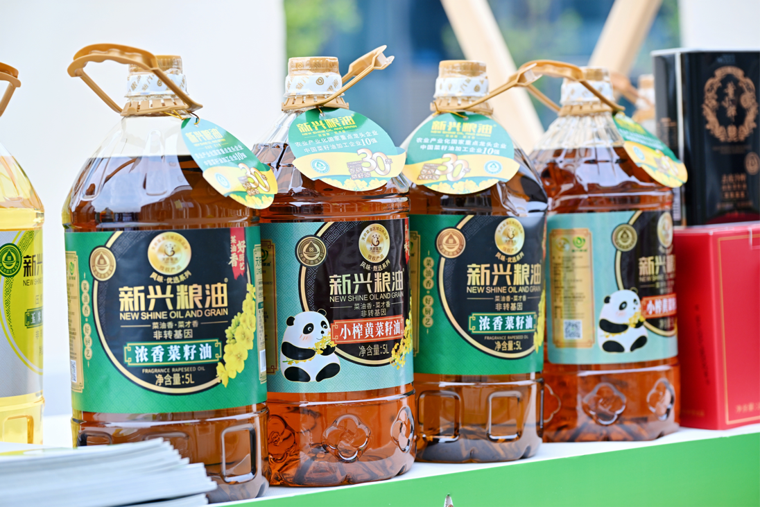 “今天看了这些新产品,发现现在的菜油挺清亮的!”在成都市新兴粮油有限公司和成都市赋油坊粮油有限责任公司的展位前,几款包装精美的菜籽油产品吸引了不少市民的目光。