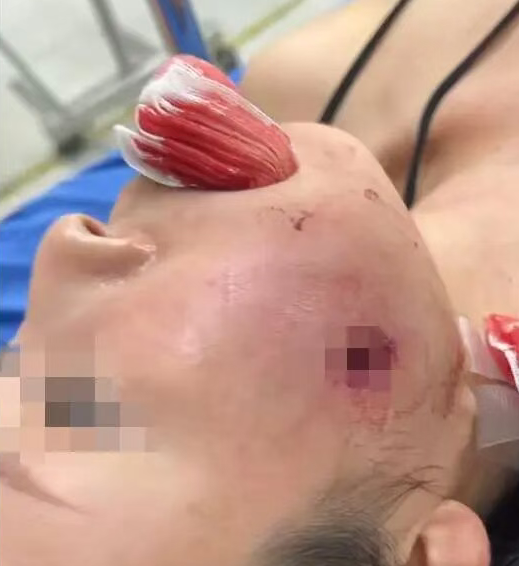 冯女士母亲脸部留下弹孔。(受访者供图)