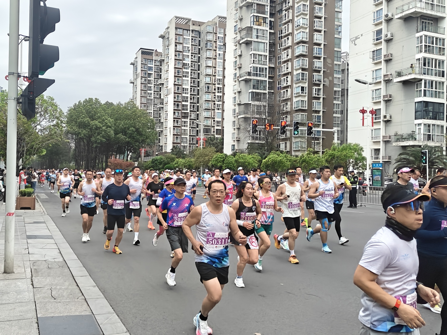 在赛事保障方面,赛道沿线共设置7个补给站,自5公里起平均每2.5公里设一处,饮水、饮料、能量食品及降温保障一应俱全。医疗保障方面共设立12个医疗站,配备21台移动AED、20辆救护车,220名医疗观察志愿者全程值守,31名医师跑者随队护航,构建起全方位、立体化的安全保障体系。
