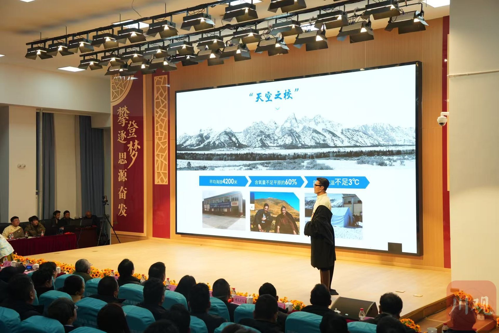 宣讲中,记者看到了学校教学楼墙面上的一行大字:“让每个生命都在雪域绽放。”