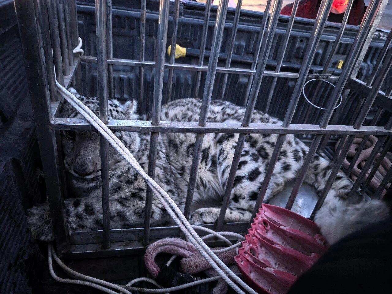 经过数小时的专业操作和耐心处置,当日20时10分,在公安民警与林业工作人员的协作下,成功使用铁笼将雪豹安全控制。整个救援过程无人员受伤,雪豹也未受到二次伤害。民警现场对雪豹进行初步检查,发现其无明显外伤,精神状态整体尚好,仅存在轻微虚弱情况,初步判断为追逐猎物时不慎迷路误入沙漠。
