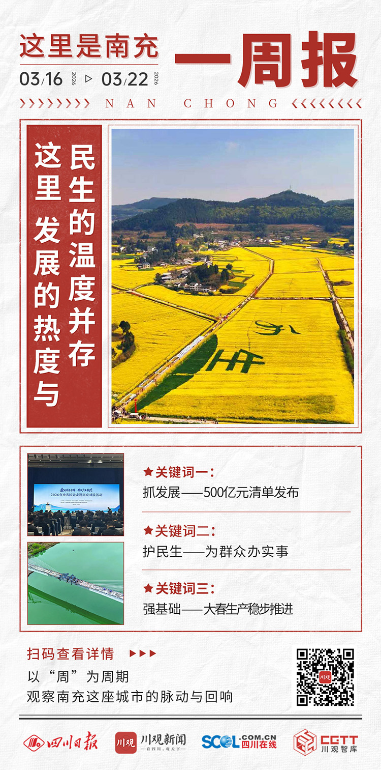 3月16日至3月22日这一周,南充既有大抓招商、大干项目的“加速度”,也有守护市民舌尖安全的“硬担当”。从嘉陵江畔的签约仪式,到大春生产、水产养殖的“开门红”,这一周里,南充交织着发展的热度与民生的温度。