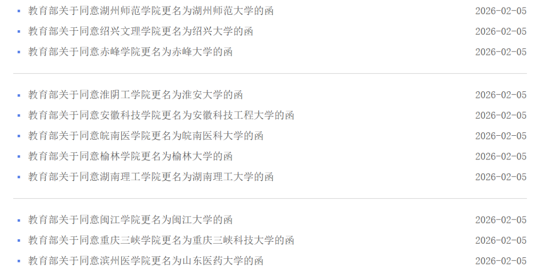 近日,教育部公布了多所地方高校由“学院”升格为“大学”的同意函。