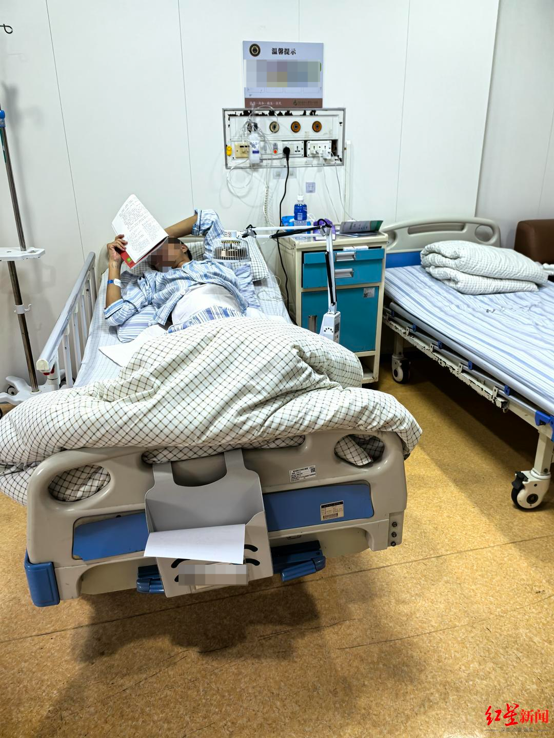 程程在广州二次换肾后,在病床上看书学习