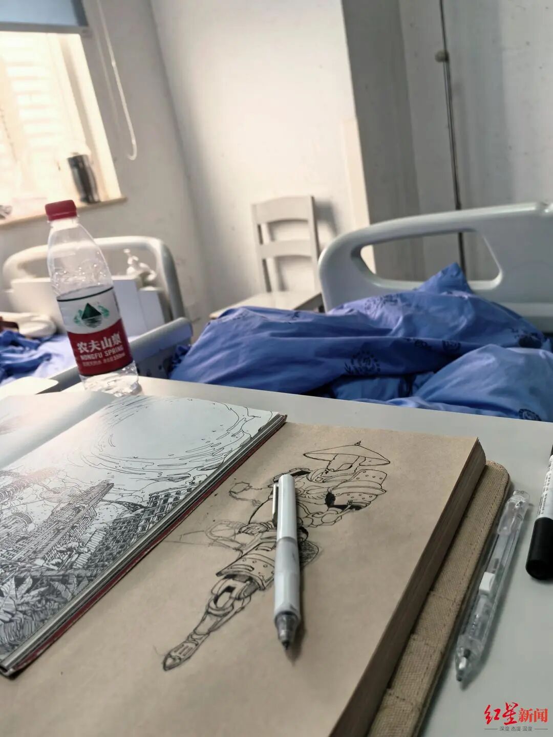 程程在病床上画画