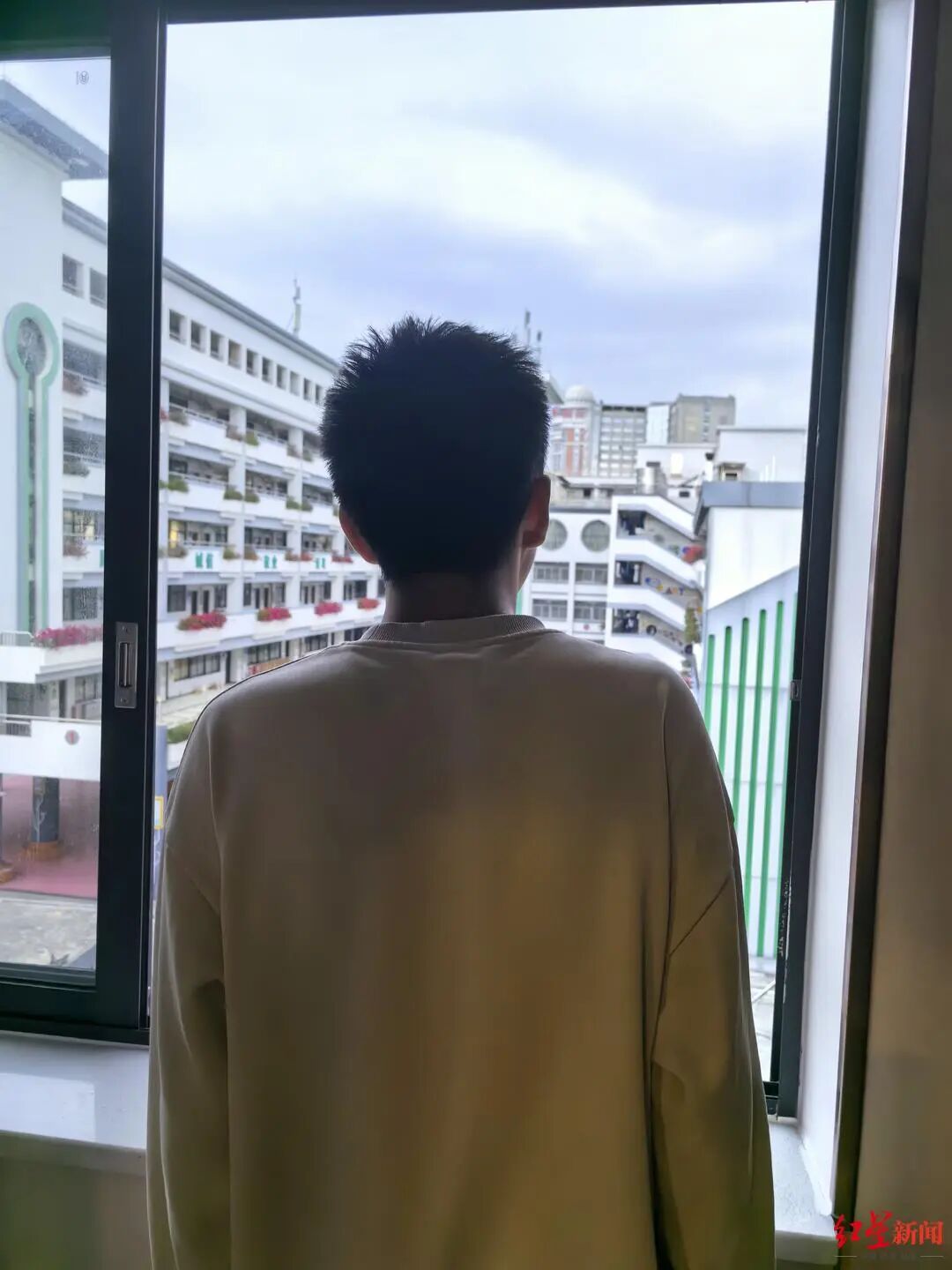 3月19日,程程出院,他和陈女士暂在医院外租住一个单间。他的精神状态初步恢复,已经能勉强上网课和画画,陈女士也会搀扶着他在楼下走一走。窗前,当地一所学校近在眼前,程程常常站在那里,望着那些和他差不多大的少年。