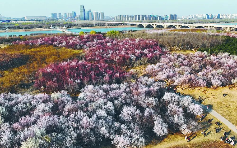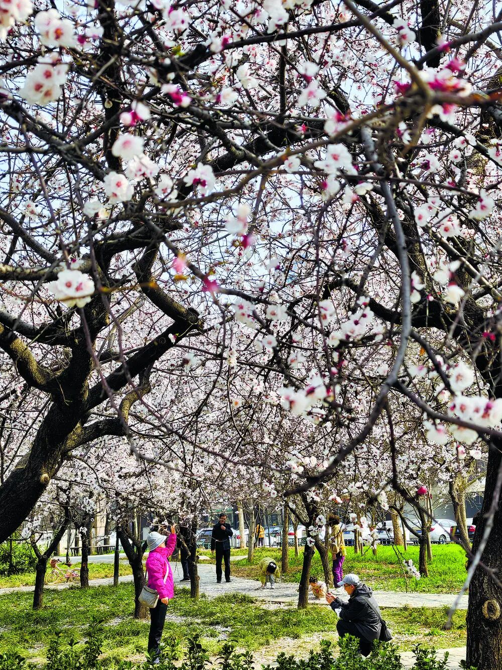 21日上午,北二环城市公园内春和景明,60岁的李大妈带着孙女在盛开的花树下嬉戏,祖孙俩笑语盈盈。不远处,一对老人在花前相互拍照,定格美好瞬间。滹沱河畔同样热闹非凡。揽秀塔东侧,私家车排起长龙;映秀山公园里的山桃花盛开,全家人出动,露营野炊,感受野趣浪漫。石家庄植物园梅园内游人如织,70岁的陈大爷虽腿脚不便,仍坐着轮椅专程赶来,带着两台相机专注拍摄梅花,用镜头记录春日盛景。