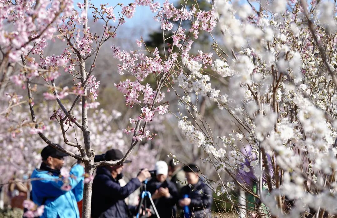 促培樱花拉开樱花季的序幕,接下来,露地樱花就要接续开放了。3月中下旬,“杭州早樱”“大山樱”“阳光樱”等早樱品种率先绽放,单瓣清雅,拉开樱花季序幕;3月底至4月上中旬,“染井吉野”等中樱品种如云似雪,进入全园盛花期;4月中下旬直到五一,“关山”“普贤象”“松月”“红华”等重瓣晚樱品种压轴,花大色艳、花期持久。早中晚樱梯次开放、层层衔接,让整个春天都有樱花可赏。