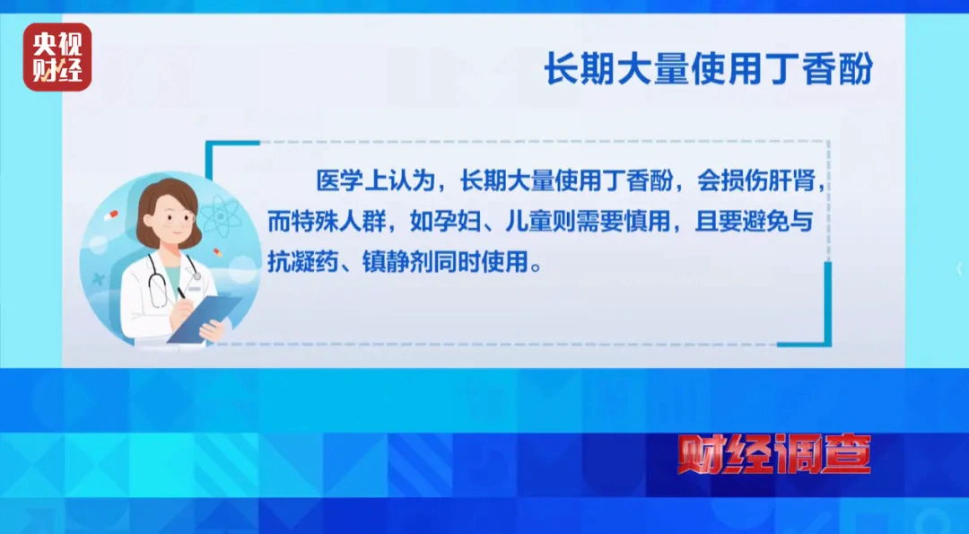 商贩称运输活鱼时加麻药,是为方便装卸、防止在运输过程中掉鱼鳞。高毒致癌的孔雀石绿虽早在2002年就被列入禁用清单,并已基本从市场上消失,但以丁香酚为主要成分的“晕鱼王”“鱼安宝”等“三无”产品悄然出现。医学上认为,长期大量使用丁香酚,会损伤肝肾,而特殊人群,如孕妇、儿童则需要慎用,且要避免与抗凝药、镇静剂同时使用。