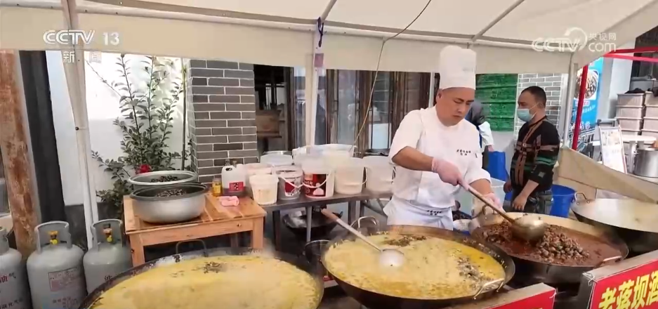 数据显示,螺蛳市集部分大型餐饮门店单日营业额超10万元,全镇饭店及市集摊位,单日螺蛳销量更是突破20万斤。今年的蒋坝螺蛳市集以螺蛳为特色主题,汇聚了人气美食、特色农产、文创好物等。与此同时,户外音乐会火热开演,让游客尽享味蕾与视听的双重盛宴。