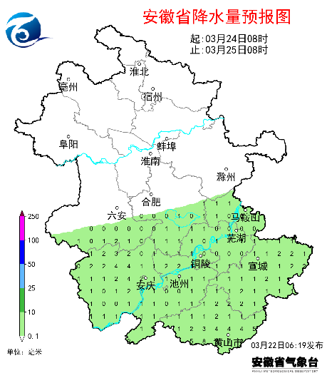 24日(周二):全省阴天转多云,江淮之间南部和江南有小雨。