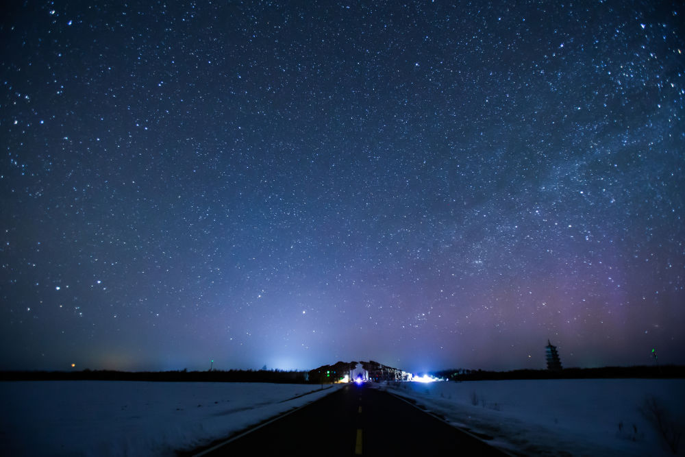 这是3月22日在黑龙江省北大荒集团北安分公司长水河农场有限公司拍摄的绚丽极光。新华社发(钱泊羽 摄)