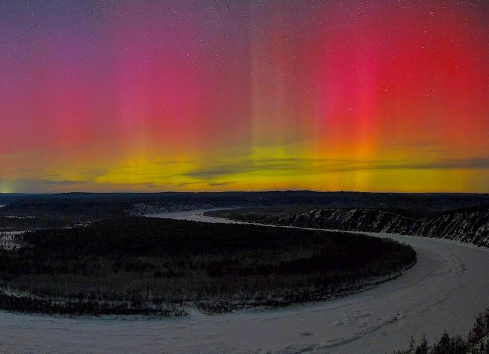 这是3月23日凌晨在黑龙江省嘉荫县拍摄的绚丽极光。新华社发(李绍军 摄)