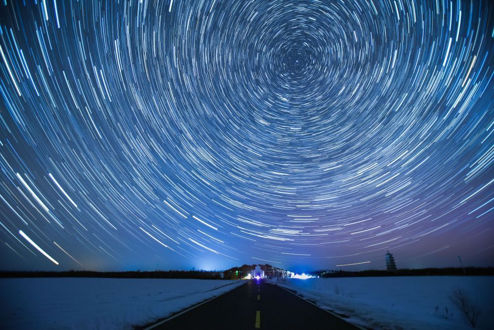 这是3月23日凌晨在黑龙江省嘉荫县拍摄的绚丽极光(堆栈合成照片)。新华社发(李绍军 摄)