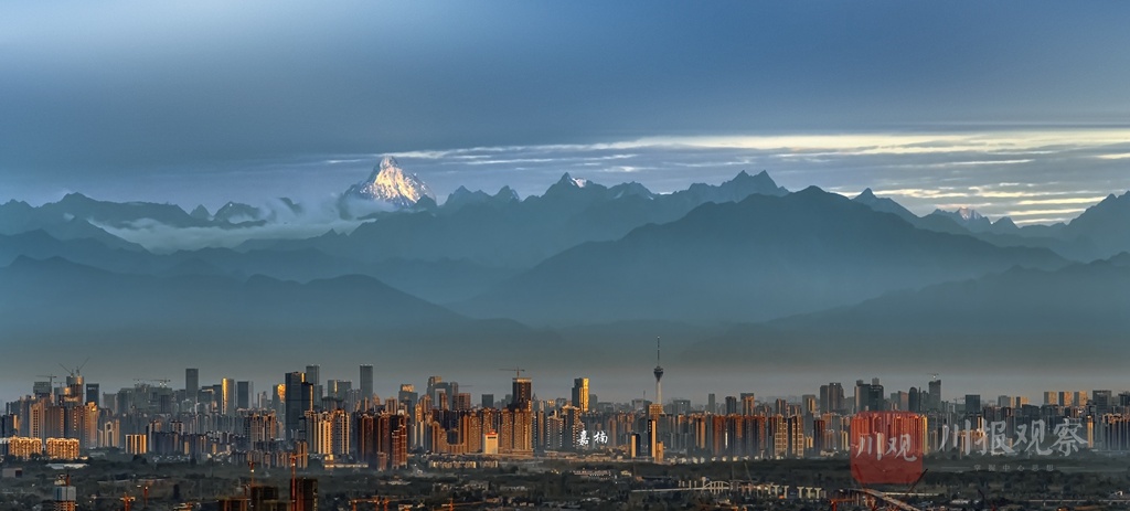 2020年8月25日,摄影师在成都市区能清晰地拍到雪山。嘉楠摄