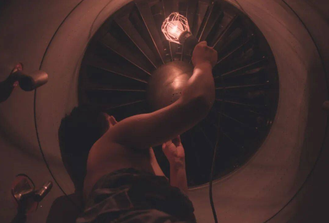 试车台温度还没降,进气道像一条被焊死的隧道。为了保护飞机,同时确保不掉落新的“多余物”,李勇和分队长张波把衣服脱到只剩裤头,两人带着相机艰难地爬进了发动机里,最终到达飞机内受损叶片位置,逐片拍摄。
