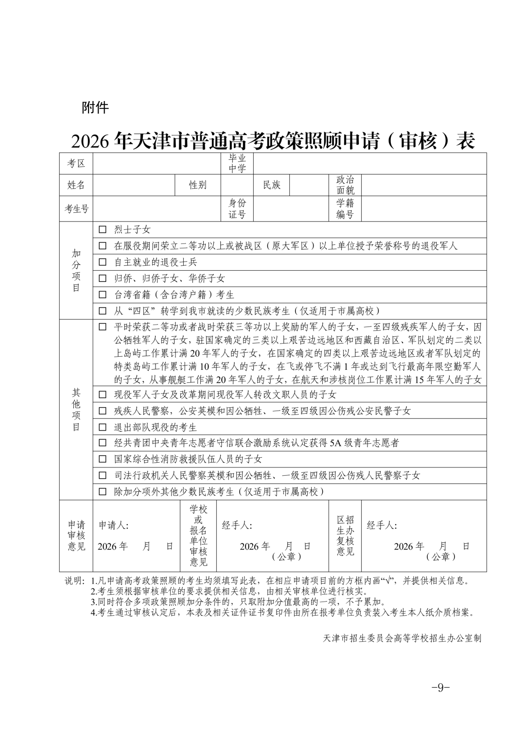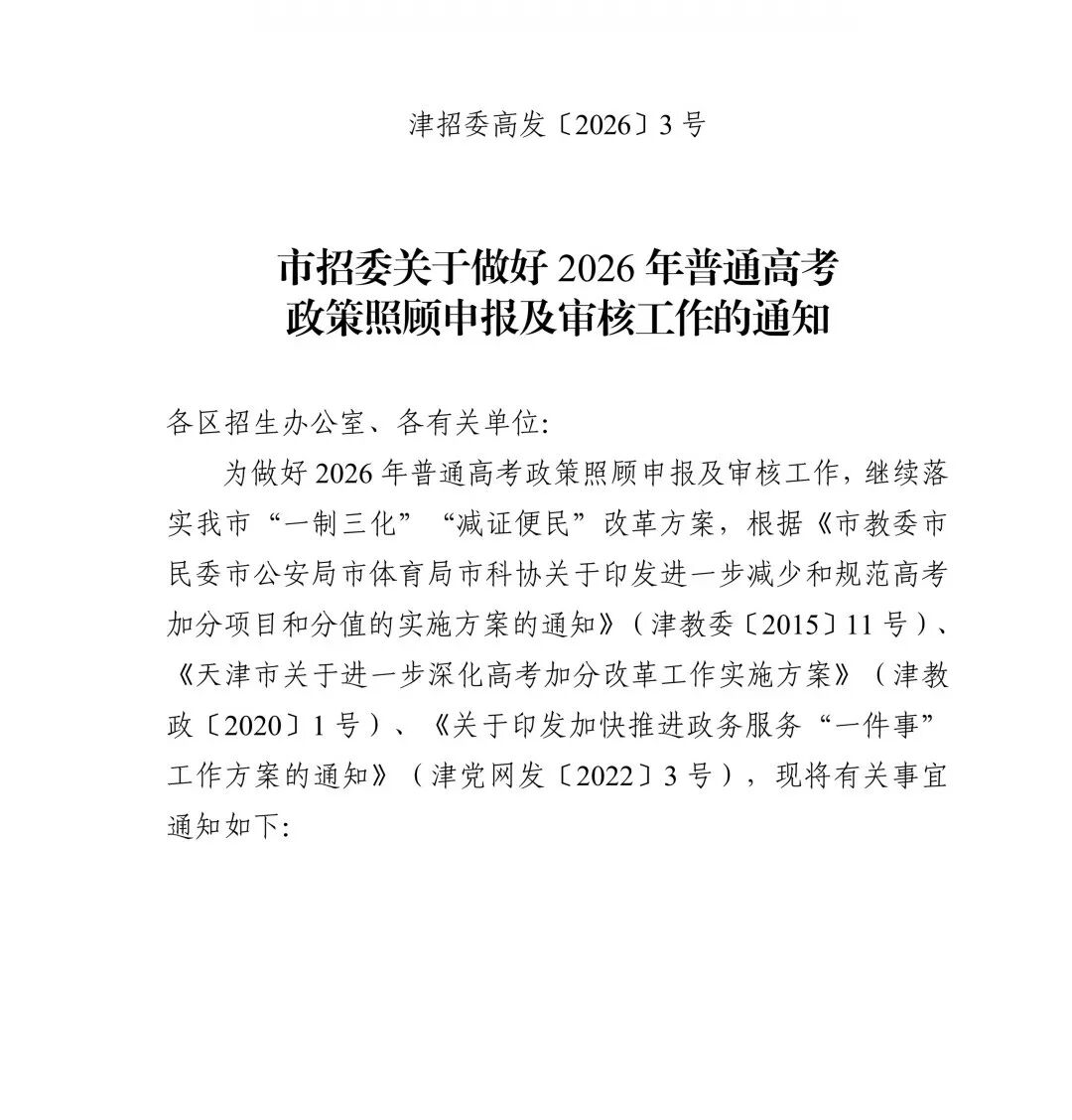 近日,《市招委关于做好2026年普通高考政策照顾申报及审核工作的通知》公布。