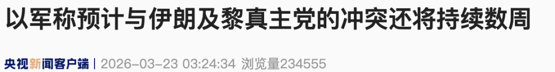 当地时间3月22日,以色列国防军发言人戴弗林表示,以色列预计其与伊朗以及黎巴嫩真主党的冲突还将持续数周时间。
