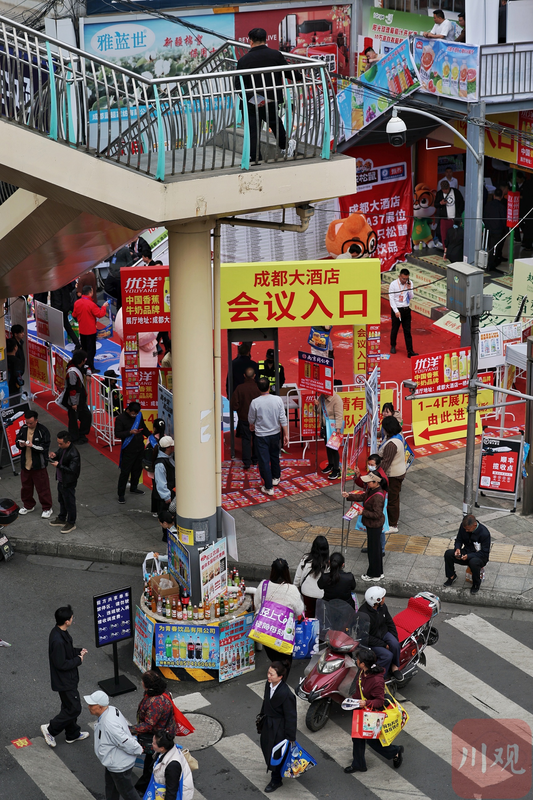 3月23日,春分已过,成都的街头巷尾除了玉兰和七里香的淡淡花香,又多了一股醇厚的酒香与甜美的食品气息。参加第114届全国糖酒商品交易会的商家在各大酒店区域的预热展览已火热开启。从火车北站一路向南,经人民北路、人民中路、人民南路,沿线各大宾馆酒店变身“开放式展厅”。在锦江宾馆、西藏饭店、成都大酒店,来自全国各地的客商穿梭其间,洽谈声、品鉴声此起彼伏。不少市民路过时,也能闻到从大堂飘出的试饮酒香;在摩肩接踵的街头,更能偶遇流动的广告。此时的成都市区,充满了浓郁的商贸烟火气。