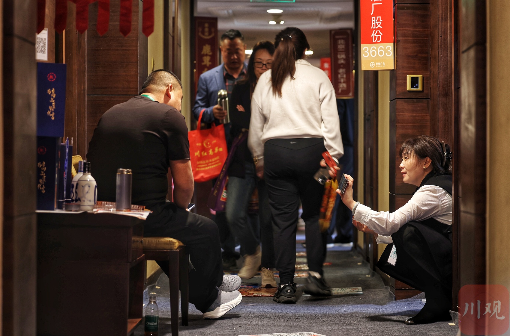 糖酒会期间,锦江宾馆外展区客商洽谈交流。