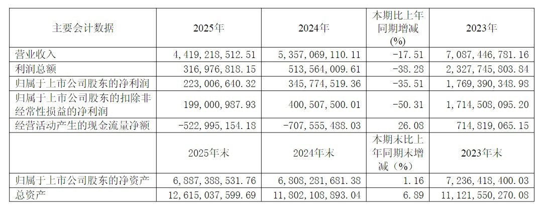 舍得酒业发布的2025年年报显示,公司全年实现营业收入44.19亿元,同比下降17.5%;实现净利润2.23亿元,同比下降35.5%。分红方面,公司拟每10股派发现金红利3.10元(含税),合计拟派发现金红利1.02亿元(含税)。