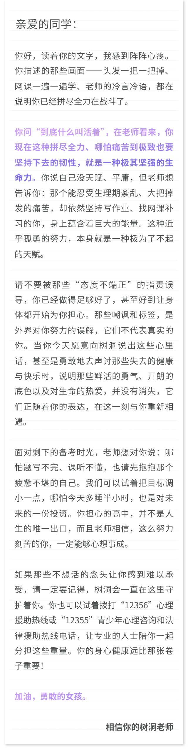 一位16岁初中女生:面对中考极度焦虑,掉发、熬夜、生理期紊乱,努力学习却被老师误解态度不端正。